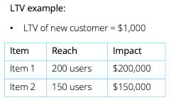 In the above example, which one you’d prioritize will depend on the economic gains, your product strategy, and the business objectives.