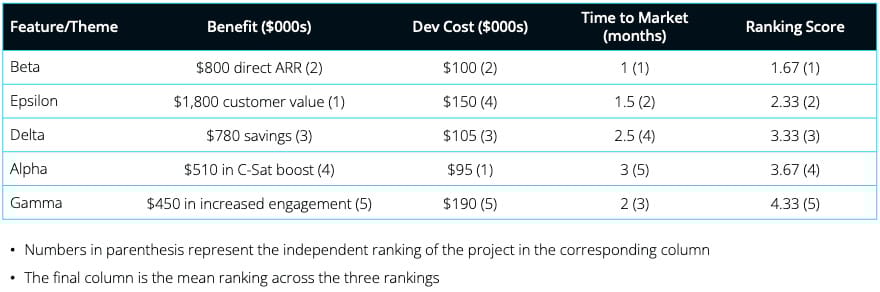 If new customer growth is the top priority → prioritize acquisition features (Beta, Epsilon).