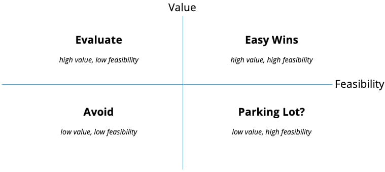 I often use a simple 2×2 matrix (value vs. effort) to make this visible at a glance.